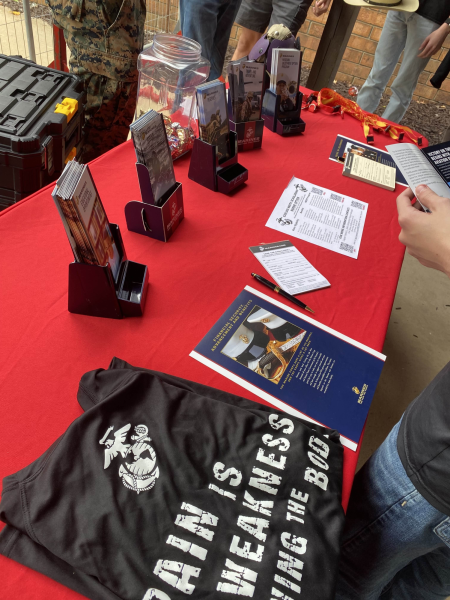 Recently, on Monday, October 6th, a marine recruiter visited our school and set up a booth next to the cafeteria, featuring pamphlets and a pull-up bar, as well as providing students with the opportunity to discuss potential opportunities and learn more about the U.S. Marine Corps.